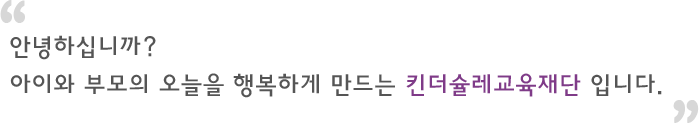 킨더슐레교육재단은 영유아의 복지와 가정의 행복 증진에 기여할 목적으로 설립된 비영리 단체